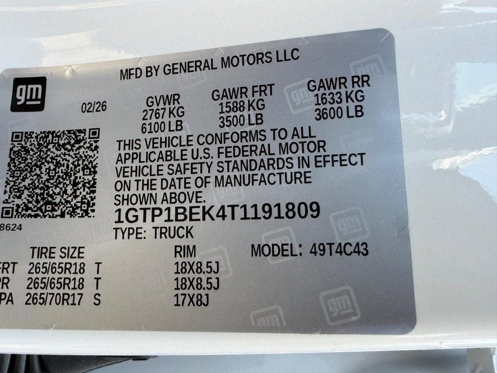 Summit White 2026 GMC Canyon Elevation 2.7L I4 Turbocharged DOHC 16V LEV3-SULEV30 310hp 8-Speed Automatic RWD 4D Crew Cab 1 Rear USB Port in Center Console (Charge-Only), 120-Volt Bed Mounted Power Outlet, 2 1st Row USB Charge/Data Ports, 2 Rear USB Ports in Center Console (Charge-Only), 3.42 Rear Axle Ratio, 4-Way Manual Front Passenger Seat Adjuster, 4-Wheel Disc Brakes, 6 Speakers, 6-Speaker Audio System Feature, 6-Way Manual Driver Seat Adjuster, ABS brakes, Air Conditioning, Alloy wheels, AM/FM radio, Apple CarPlay/Android Auto, Auto High-beam Headlights, Automatic Emergency Braking, Automatic Stop/Start, Blind Zone Steering Assist with Trailering, Brake assist, Bumpers: body-color, Canyon Pro Safety, Canyon Safety Plus Package, Cloth Seat Trim, Compass, Convenience Package, Delay-off headlights, Driver and Front Passenger Illuminated Visors, Driver door bin, Driver vanity mirror, Dual front impact airbags, Dual front side impact airbags, Dual-Zone Automatic Climate Control Air Conditioning, Electronic Stability Control, Emergency communication system: OnStar, EZ-Lift and Lower Tailgate, Following Distance Indicator, Forward Collision Alert, Front anti-roll bar, Front Bucket Seats, Front Center Armrest, Front LED Fog Lamps, Front Passenger Seatback Map Pocket, Front Pedestrian and Bicyclist Braking, Front wheel independent suspension, Heated door mirrors, Illuminated entry, Inside Rear-View Auto-Dimming Mirror, IntelliBeam Automatic High Beam on/Off, Interior Overhead Courtesy Light with Dual Reading Lamp, Lane Keep Assist with Lane Departure Warning, Low tire pressure warning, MultiStow Tailgate Storage Compartment, Navigation System, Occupant sensing airbag, Off-Road Suspension, Outside temperature display, Overhead airbag, Overhead console, Panic alarm, Passenger door bin, Passenger vanity mirror, Power door mirrors, Power steering, Power windows, Radio data system, Radio: 11.3 Diagonal Premium GMC Infotainment System, Rear Cross Traffic Braking, Rear of Console 120-Volt Power Outlet, Rear reading lights, Rear step bumper, Rear window defroster, Remote keyless entry, Remote Vehicle Starter System, Security system, SiriusXM with 360L, Speed control, Speed-sensing steering, Split folding rear seat, Steering wheel mounted audio controls, Stop/Start System Disable Button Engine Control, Tachometer, Tailgate Keyed Cylinder Lock, Til and Telescopic Manual Steering Column, Tilt steering wheel, Traction control, Trip computer, Ultrasonic Rear Park Assist, Variably intermittent wipers, Wheels: 18 x 8.5 Gloss Black Finish Aluminum, Wireless Apple CarPlay/Wireless Android Auto.