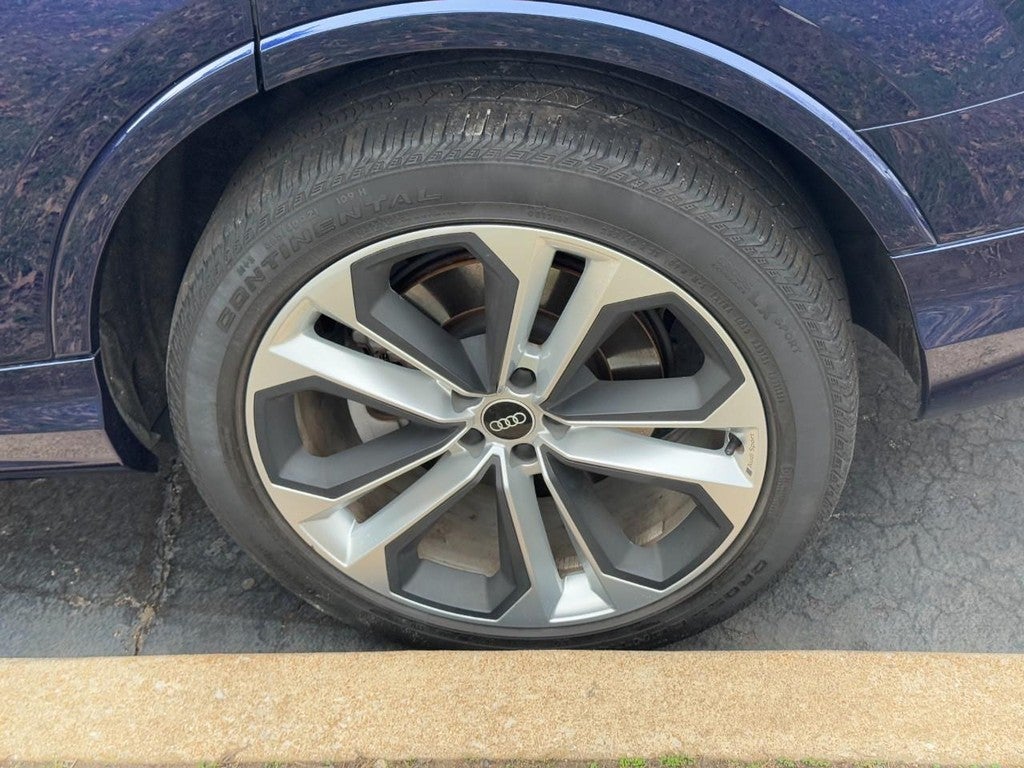 Clean CARFAX. 2021 Audi Q7 55 Premium Plus quattro 3.0L TFSI V6 DOHC 8-Speed Automatic with Tiptronic quattro 4D Sport Utility Blue 10 Speakers, 3.204 Axle Ratio, 3rd row seats: bench, 4-Wheel Disc Brakes, ABS brakes, Air Conditioning, Alloy wheels, AM/FM radio: SiriusXM, Audi smartphone interface (Apple CarPlay/Android Auto), Auto High-beam Headlights, Auto-dimming Rear-View mirror, Automatic temperature control, Brake assist, Bumpers: body-color, Compass, Delay-off headlights, Driver door bin, Driver vanity mirror, Dual front impact airbags, Dual front side impact airbags, Electronic Stability Control, Emergency communication system: Audi connect CARE, PRIME & PLUS, Exterior Parking Camera Rear, Four wheel independent suspension, Front anti-roll bar, Front Bucket Seats, Front Center Armrest, Front dual zone A/C, Front fog lights, Front reading lights, Fully automatic headlights, Garage door transmitter: HomeLink, Genuine wood door panel insert, Heated door mirrors, Heated Front Bucket Seats, Heated front seats, Illuminated entry, Leather Seating Surfaces, Leather Shift Knob, Leather steering wheel, Low tire pressure warning, Memory seat, Navigation system: Audi MMI Navigation plus with Touch Response, Occupant sensing airbag, Outside temperature display, Overhead airbag, Overhead console, Panic alarm, Passenger door bin, Passenger vanity mirror, Power door mirrors, Power driver seat, Power Liftgate, Power moonroof, Power passenger seat, Power steering, Power windows, Radio data system, Radio: Audi Sound System, Rain sensing wipers, Rear air conditioning, Rear anti-roll bar, Rear fog lights, Rear reading lights, Rear seat center armrest, Rear window defroster, Rear window wiper, Reclining 3rd row seat, Remote keyless entry, Roof rack: rails only, Security system, Speed control, Speed-sensing steering, Split folding rear seat, Spoiler, Steering wheel memory, Steering wheel mounted audio controls, Tachometer, Telescoping steering wheel, Tilt steering wheel, Traction control, Trip computer, Turn signal indicator mirrors, Variably intermittent wipers, Wheels: 19" 5-Arm-Star Design.