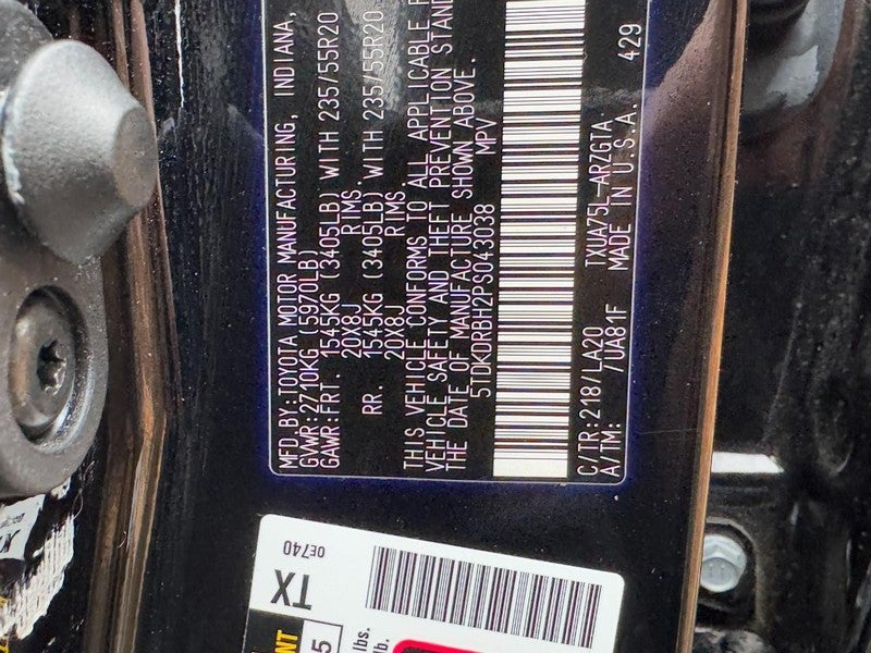 2023 Toyota Highlander Platinum 2.4L I4 PDI Turbocharged DOHC 16V LEV3-SULEV30 265hp 8-Speed Automatic AWD 4D Sport Utility Midnight Black AWD, 11 Speakers, 20" Painted Alloy Wheels, 3.329 Axle Ratio, 3rd row seats: split-bench, 4-Wheel Disc Brakes, ABS brakes, Air Conditioning, All Weather Floor & Cargo Liner (TMS), Alloy wheels, AM/FM radio: SiriusXM, Apple CarPlay/Android Auto, Auto High-beam Headlights, Auto-dimming Rear-View mirror, Automatic temperature control, Body Side Moldings (TMS), Brake assist, Bumpers: body-color, Cargo Cross Bars (TMS), Delay-off headlights, Digital Rearview Mirror, Digital Rearview Mirror w/HomeLink, Door Edge Guards (TMS), Driver door bin, Driver vanity mirror, Dual front impact airbags, Dual front side impact airbags, Electronic Inner Mirror, Electronic Stability Control, Emergency communication system: Safety Connect (up to 10-year trial subscription), Four wheel independent suspension, Front anti-roll bar, Front Bucket Seats, Front Center Armrest, Front dual zone A/C, Front fog lights, Front reading lights, Fully automatic headlights, Garage door transmitter: HomeLink, Heads-Up Display, Heated door mirrors, Heated front seats, Heated rear seats, Heated steering wheel, Heated/Ventilated Front Bucket Seats, High Grade LED Projector Headlights, Illuminated entry, Knee airbag, Leather Seat Trim, Leather Shift Knob, Leather steering wheel, Low tire pressure warning, Memory seat, Navigation system: Drive Connect Cloud Navigation (1-year trial subscription), Occupant sensing airbag, Outside temperature display, Overhead airbag, Overhead console, Panic alarm, Panoramic Moonroof, Panoramic View Monitor, Passenger door bin, Passenger vanity mirror, Platinum Package, Power door mirrors, Power driver seat, Power Liftgate, Power moonroof, Power passenger seat, Power steering, Power windows, Radio: 12.3" Toyota Audio Multimedia w/JBL Premium, Rain sensing wipers, Rear air conditioning, Rear anti-roll bar, Rear reading lights, Rear window defroster, Rear window wiper, Reclining 3rd row seat, Remote keyless entry, Roof rack: rails only, Security system, Speed control, Speed-sensing steering, Split folding rear seat, Spoiler, Steering wheel mounted audio controls, Tachometer, Telescoping steering wheel, Tilt steering wheel, Traction control, Trip computer, Turn signal indicator mirrors, Variably intermittent wipers, Ventilated front seats, AWD.